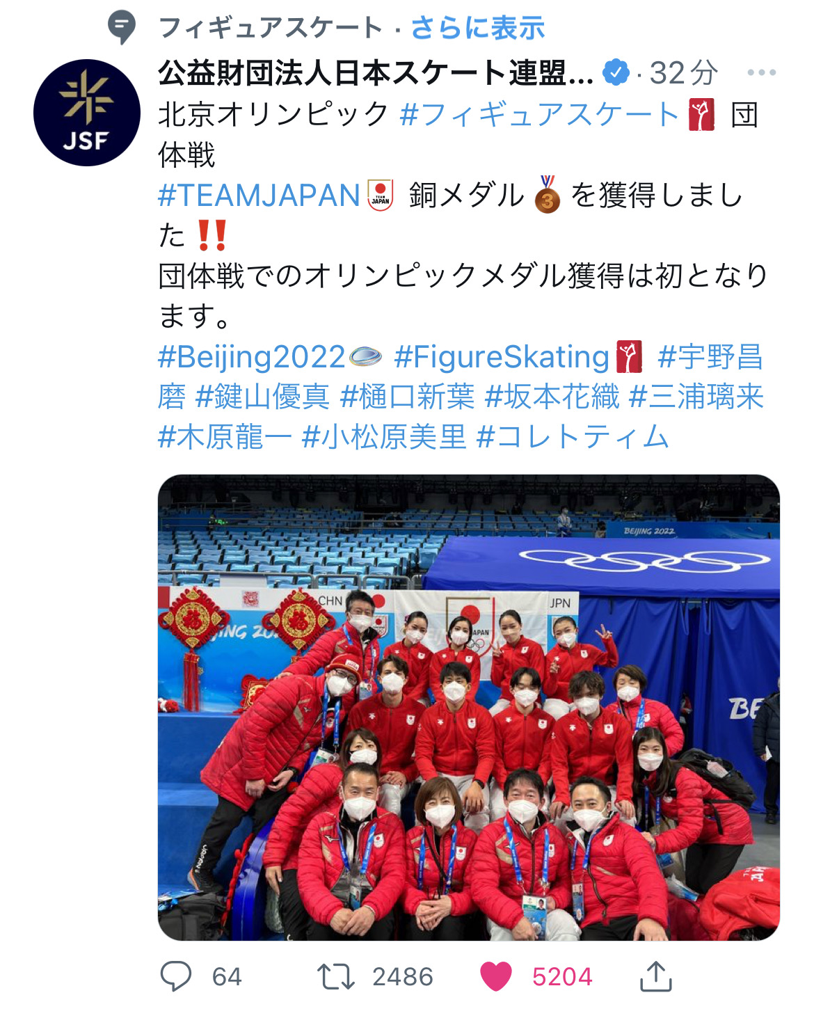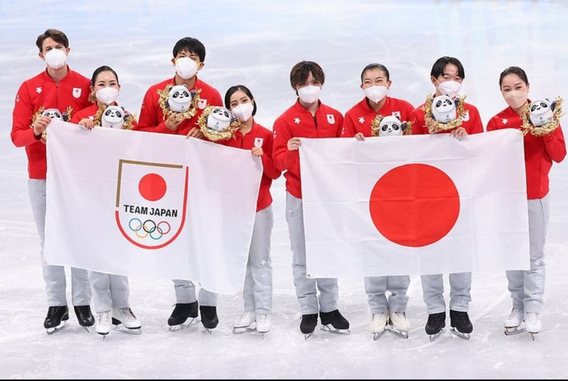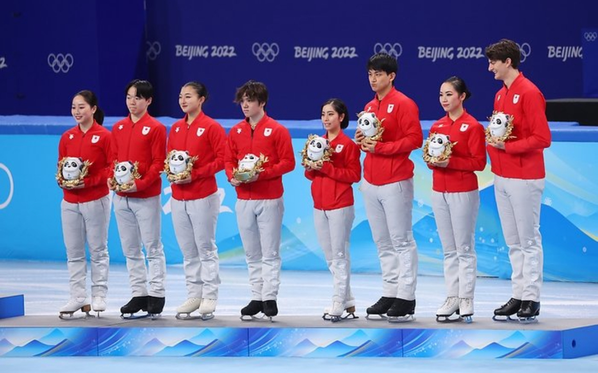 フィギュアスケート団体戦のメダル授与式を