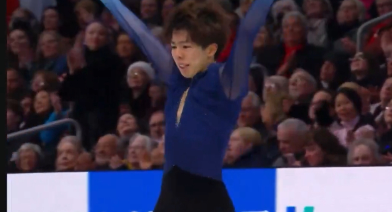 ラトビアのデニス・ヴァシリエフス選手が4回転構成をノーミスで滑り切り