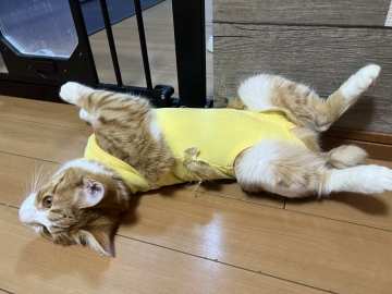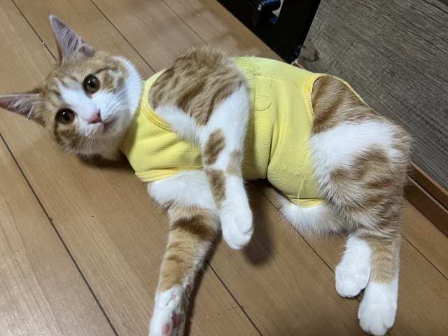 先日避妊手術を受けた子猫のマンデリンがやっと抜糸を終えました。